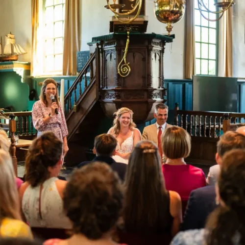 Natuurlijk! Ik maak de ceremonie heel interactief. De zaal zit er niet bij als toeschouwer. Iedereen wordt meegenomen in jullie verhaal.